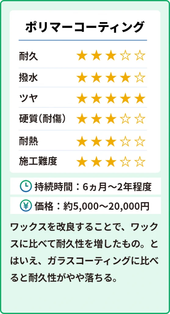 カーコーティングは、大きく分けて3つの種類があります。
