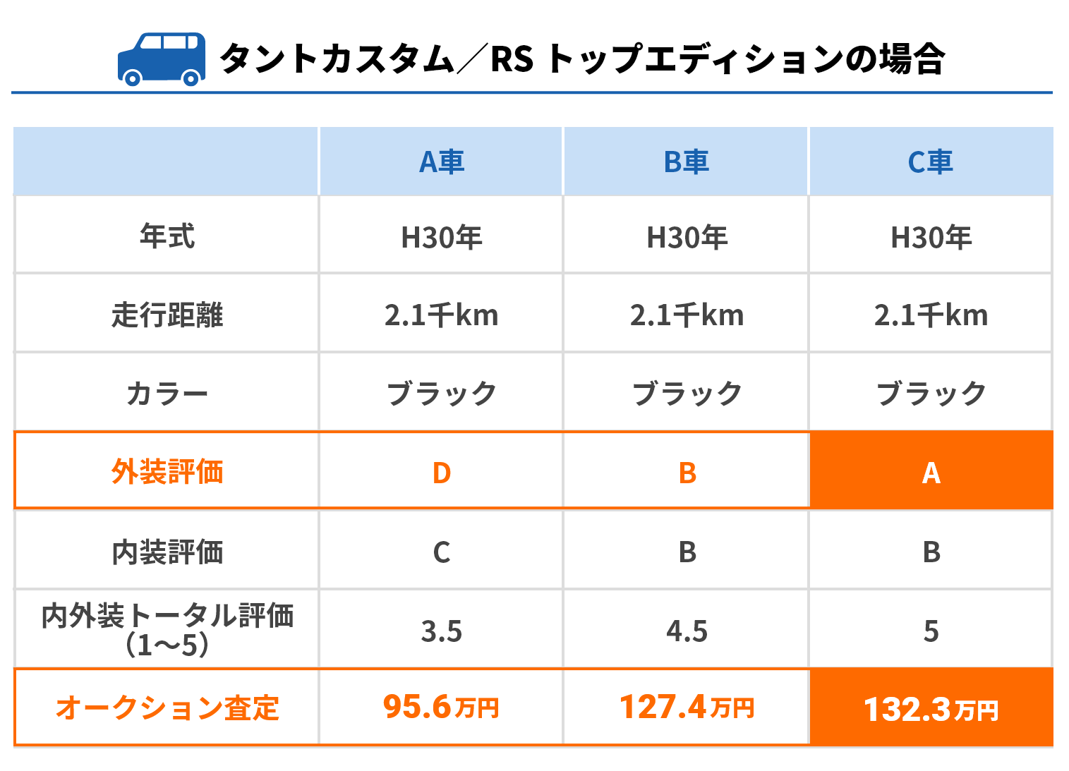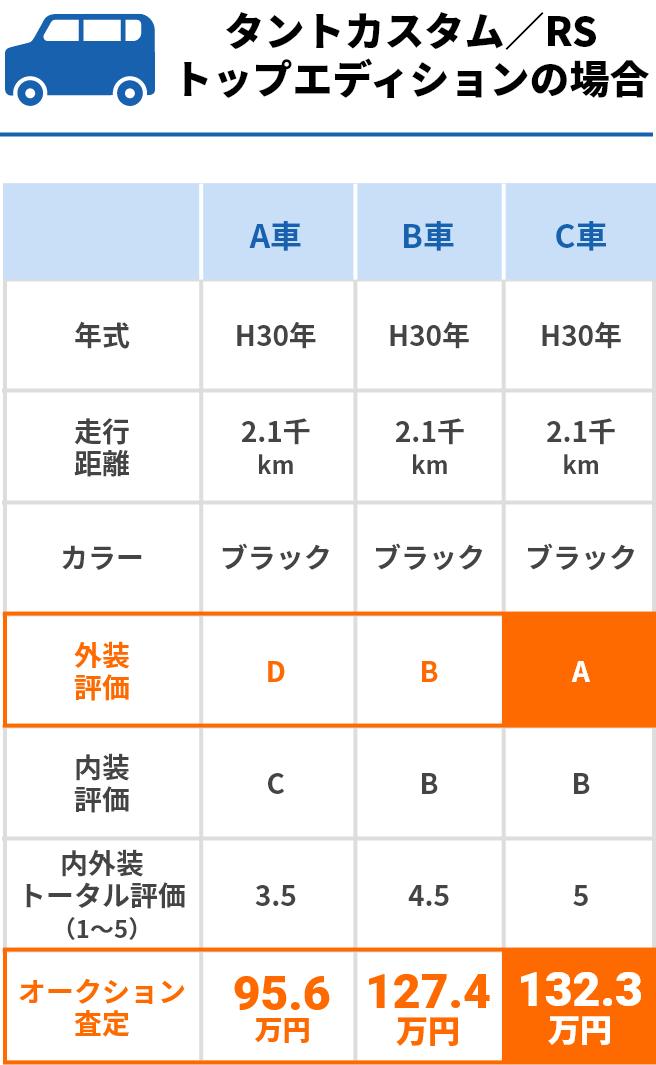 車種・スペック・年式・走行距離・カラーが全て同一条件の車でも