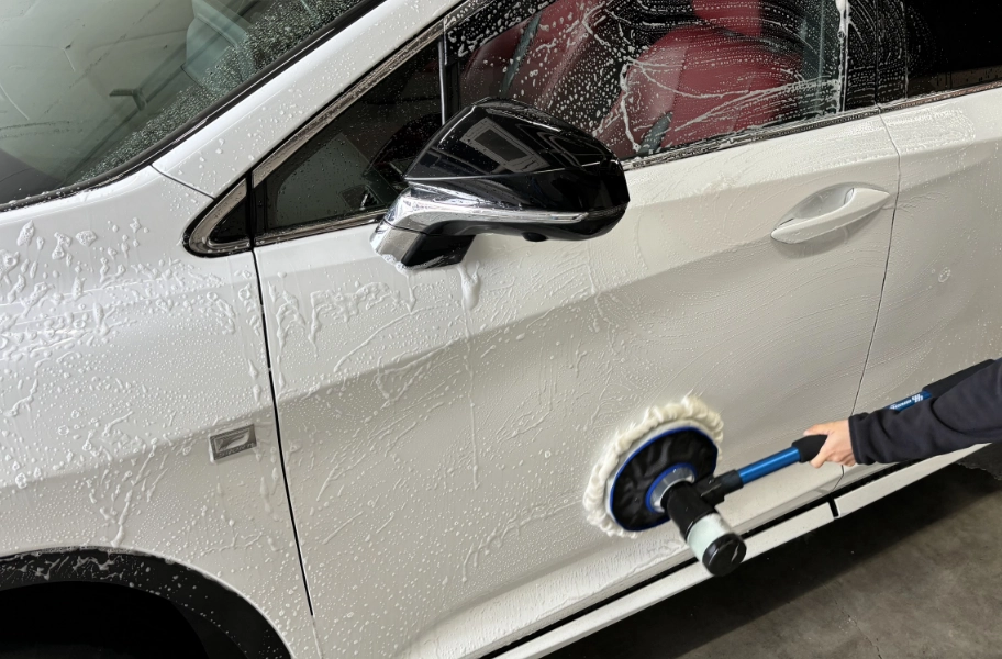ボディに傷をつけない“オリジナル専用ツール”を使って手洗い洗車いたします。