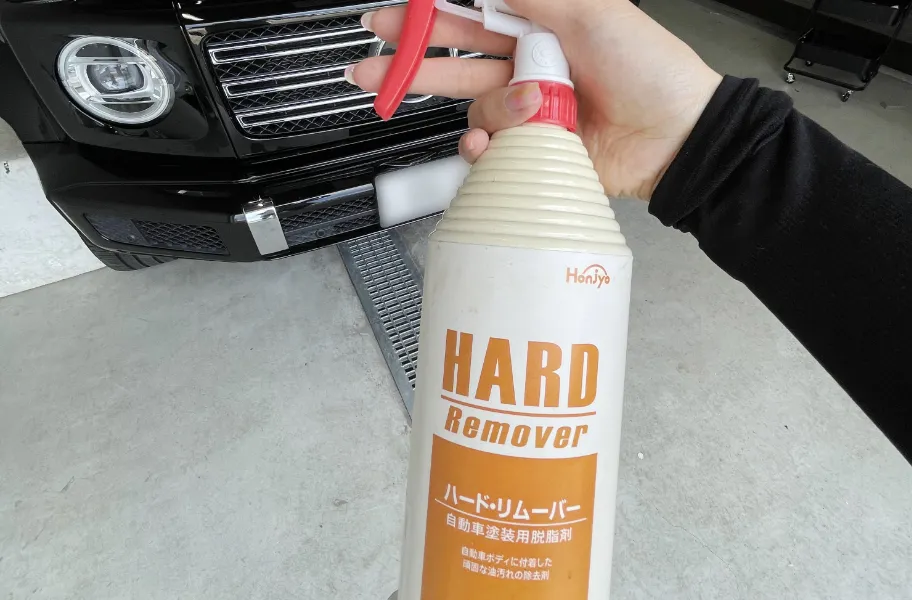 シャンプーで落としきれない油汚れを脱脂剤を使って取り除きます。